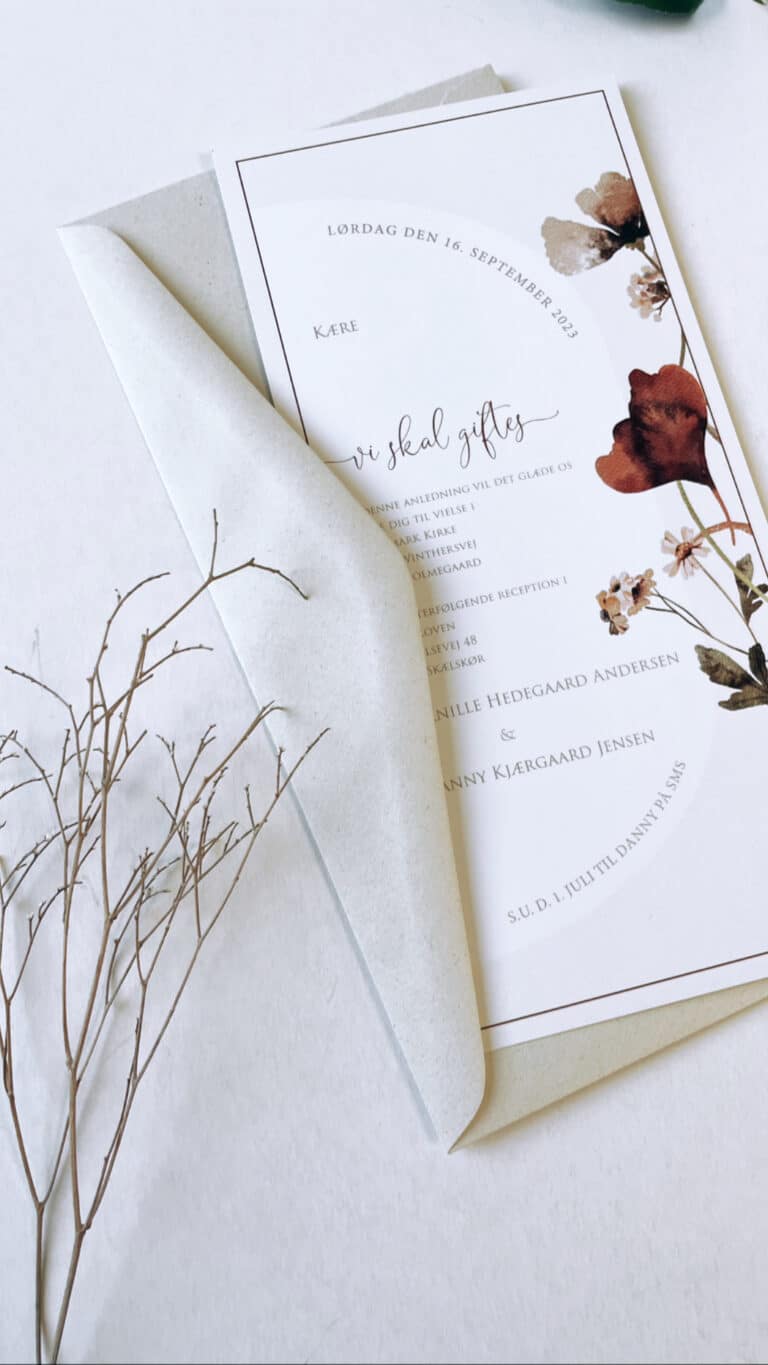 Katrine & Jeppe blev gift på Hotel Skanderborghus på deres 10-årsdag. Med Flora-designlinjen skabte de en rød tråd gennem hele dagen – fra invitationer og sanghæfter til bordplan og små personlige detaljer. I indlægget deler Katrine selv sine oplevelser og fortæller, hvordan tryksagerne var med til at binde festen sammen.
