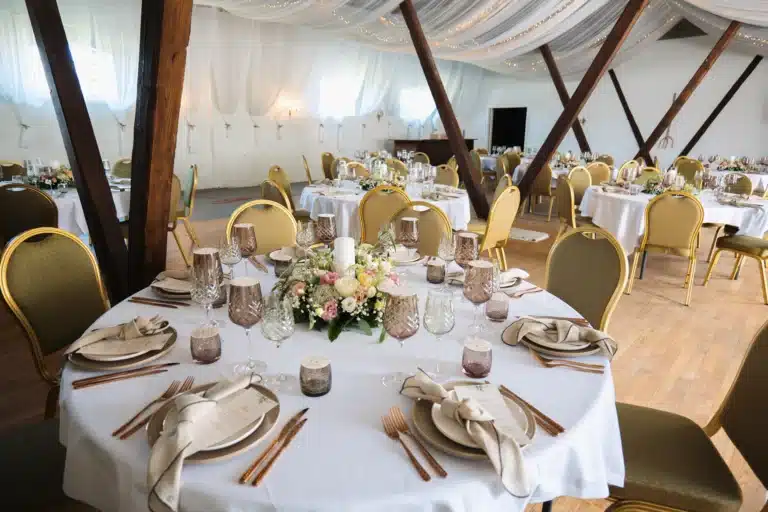 Et bryllupslokale bliver først rigtig personligt, når detaljerne hænger sammen. Se hvordan Lene og Kim skabte en rød tråd med Gold Leaf design, guldfolie og små unikke tryksager – fra invitation til sanghæfte og fest på Hvolgaard. 💛