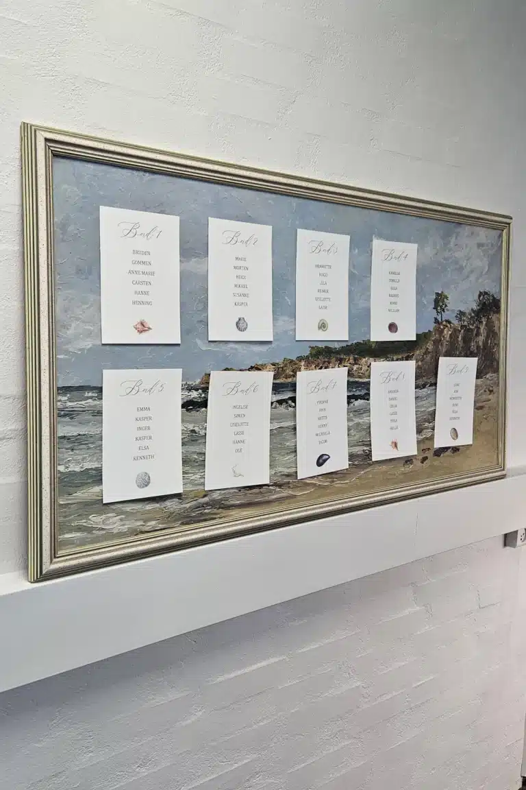 En bordplan er mere end bare praktik – det er en mulighed for at byde gæsterne velkommen på en personlig og kreativ måde. Når du laver din egen bordplan, kan du lege med materialer og udtryk, der passer til dit tema: brug et romantisk spejl med kalligrafi, en gammel palle pyntet med blomster og lyskæder eller små navnekort kombineret med en sød hilsen.