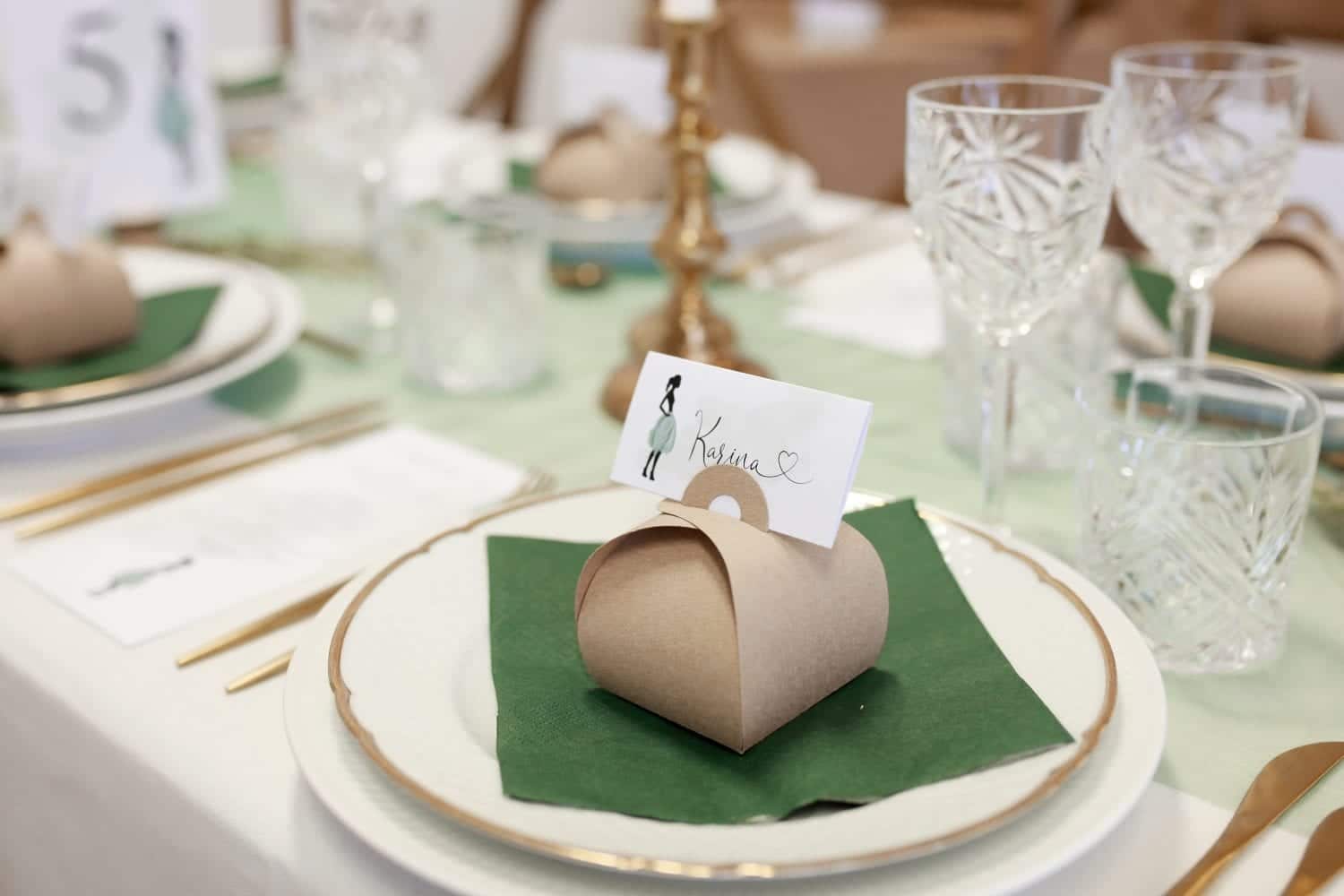 Hvis du har planlagt en rigtig lækker festmiddag, så kan du også sætte menukort på bordene. Du kan enten lave enkelte kort til hver gæst eller fælles kort, hvor du placerer et par stykker på hvert af bordene – alt afhængig af bordenes størrelse. Gæsterne synes altid, det er dejligt at vide hvilken lækker mad, de kan glæde sig til i løbet af dagen!