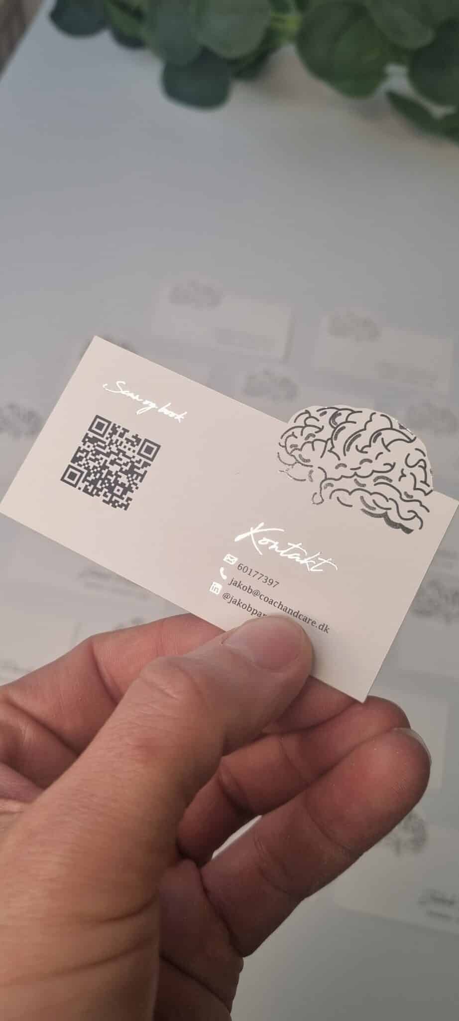 Ja, vi kan sagtens lave visitkort med QR-kode. Den kan for eksempel linke til jeres website, LinkedIn, booking, portfolio eller en særlig landingsside. Det er en god løsning, hvis kortet skal kunne mere end bare vise kontaktoplysninger.
