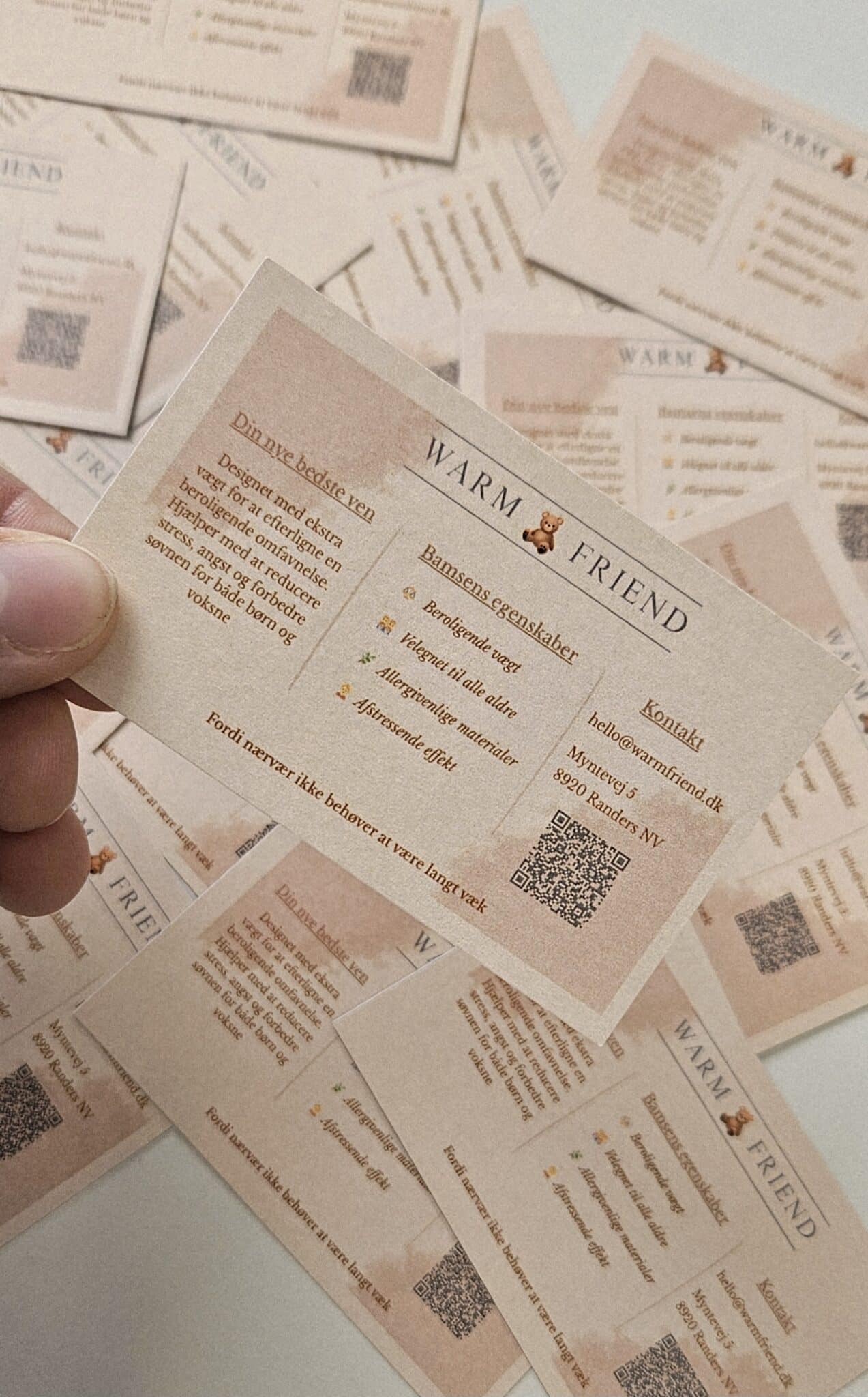 Vi hjælper virksomheder, selvstændige og kreative fag med visitkort design, der føles gennemtænkt og passer til brandet. Har I allerede et design klar, kan vi også hjælpe med tryk, papirvalg og finish, så det færdige visitkort får det rette udtryk.
