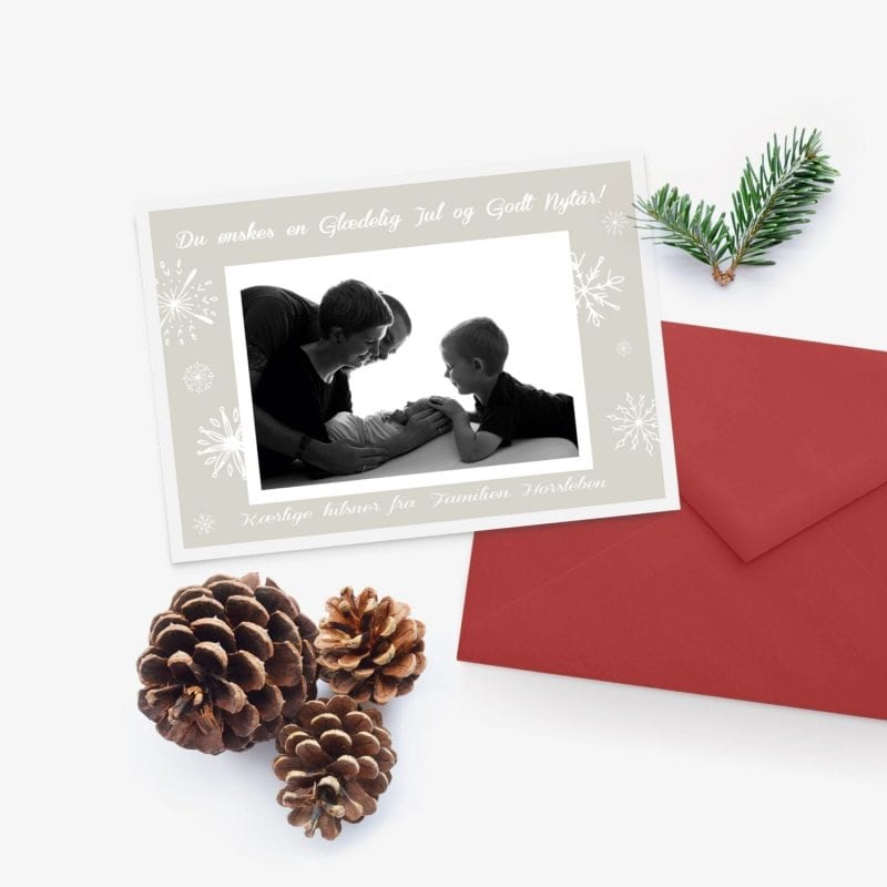 Bevar traditionen med julehilsner i december måned. Send et personligt julekort til familie og venner og glæd dem med en unik julehilsen fra dig og din familie – det vil utvivlsomt varme hos mormor og morfar, faster og onkel eller gode venner at få en personlig hilsen til jul.