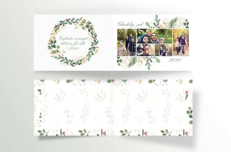 Du kan også gå mere utraditionelt til værks og vælge det foldede A6-kort med plads til en rigtig lang julehilsen til dem, du holder af. Her er grafikken og stilen på julekortet både at finde på bagsiden og inden i kortet. A6-julekortet passer i en C6-kuvert, som også kan tilkøbes sammen med dine julekort.