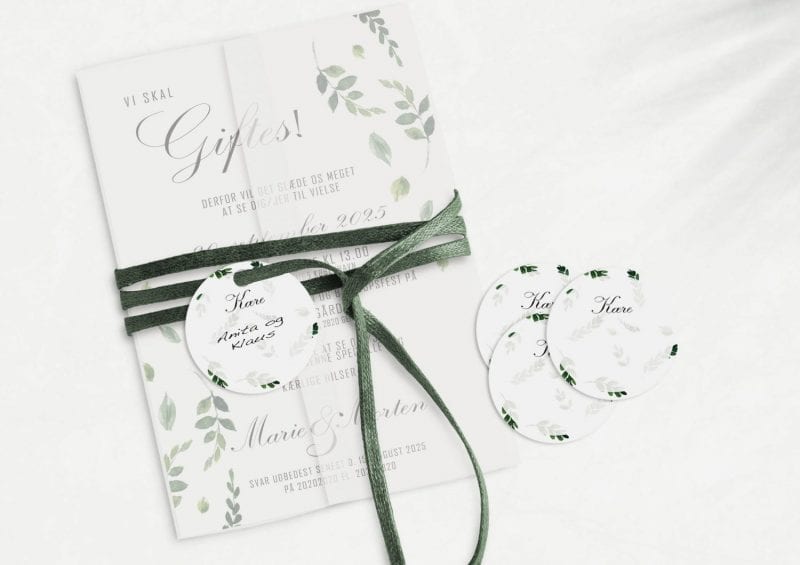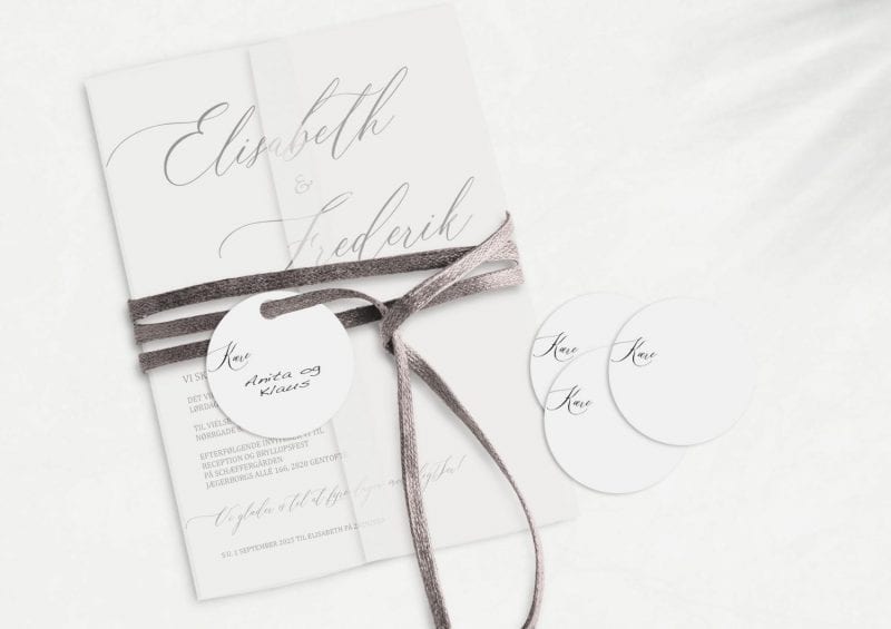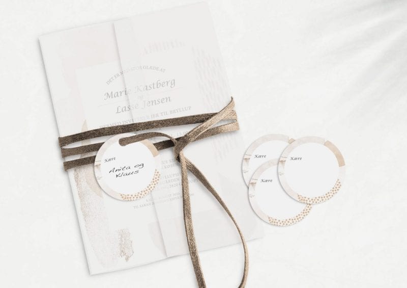 Vi indsætter gerne dine gæsters navne på manillamærkerne, så du har kære-delen på manillamærkerne og ikke på selve invitationen.