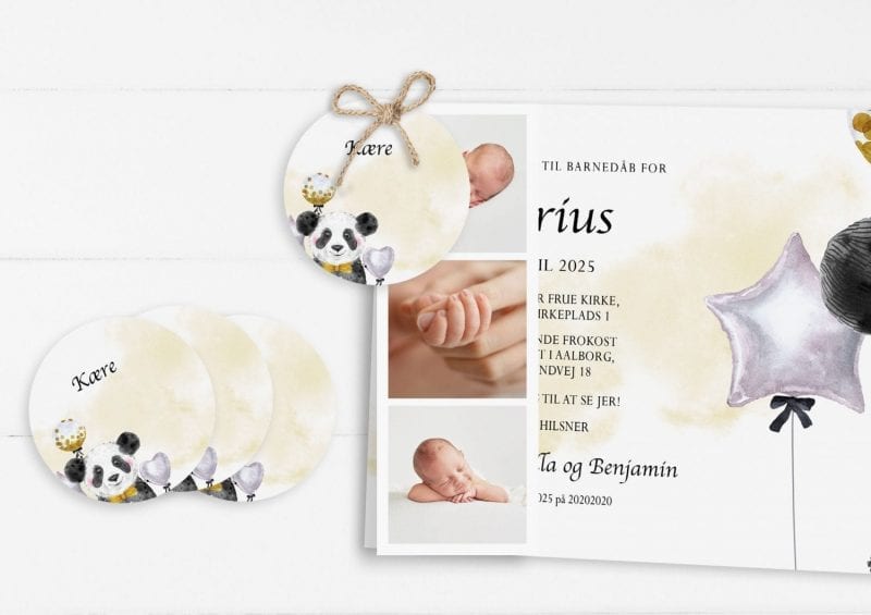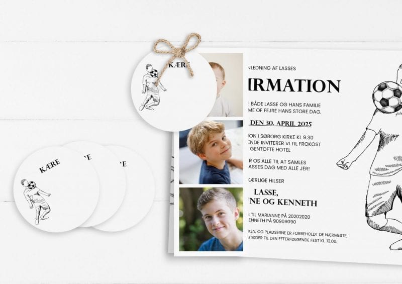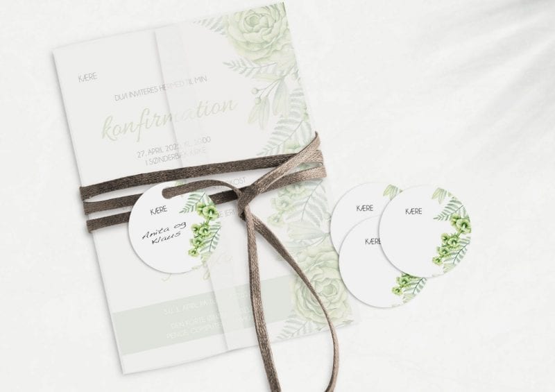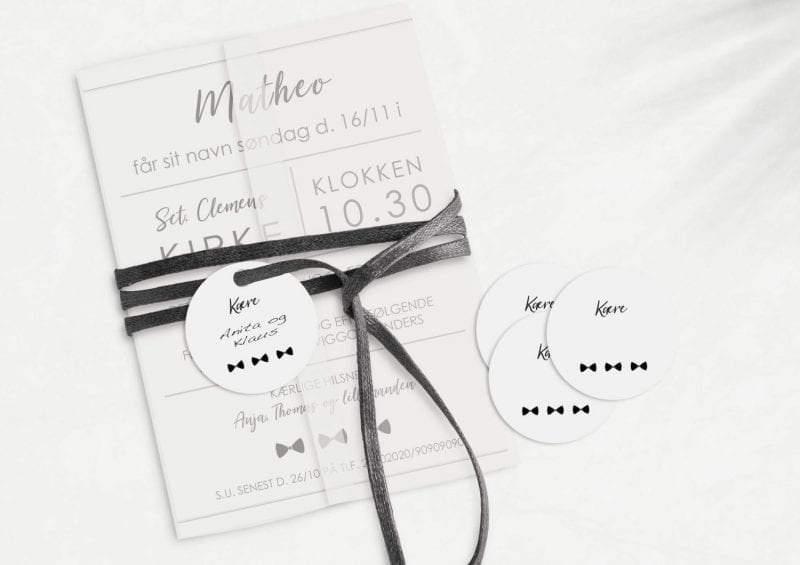Vælg samme design som din bryllupsinvitation, konfirmationsinvitation eller barnedåbsinvitation – fra invitationer og tilbehør, festprodukter og afslutningsvis takkekortet.
