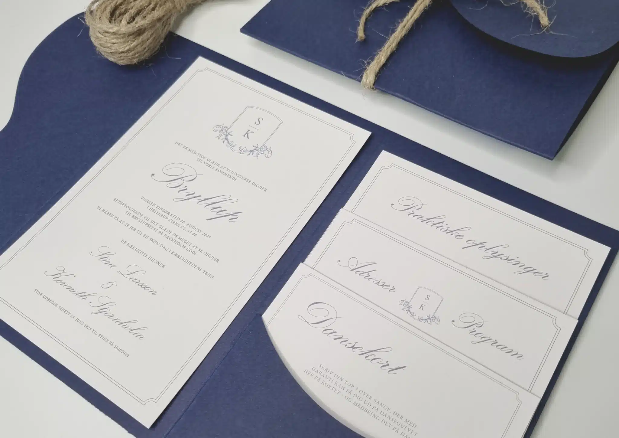 Vores mission er at gøre jeres dag både smuk og personlig, og vi kan tilpasse alle elementer efter jeres ønsker – lige fra papirvalg til små detaljer i layoutet. Kontakt os gerne, hvis I har specifikke ideer eller ønsker, så hjælper vi med at gøre dem til virkelighed!