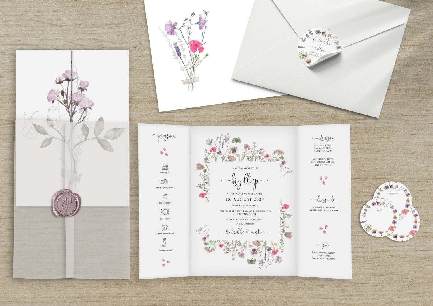 💌 Her køber du selve invitationen – tilbehør som kalkeromslag, stickers og snor findes nederst på siden.