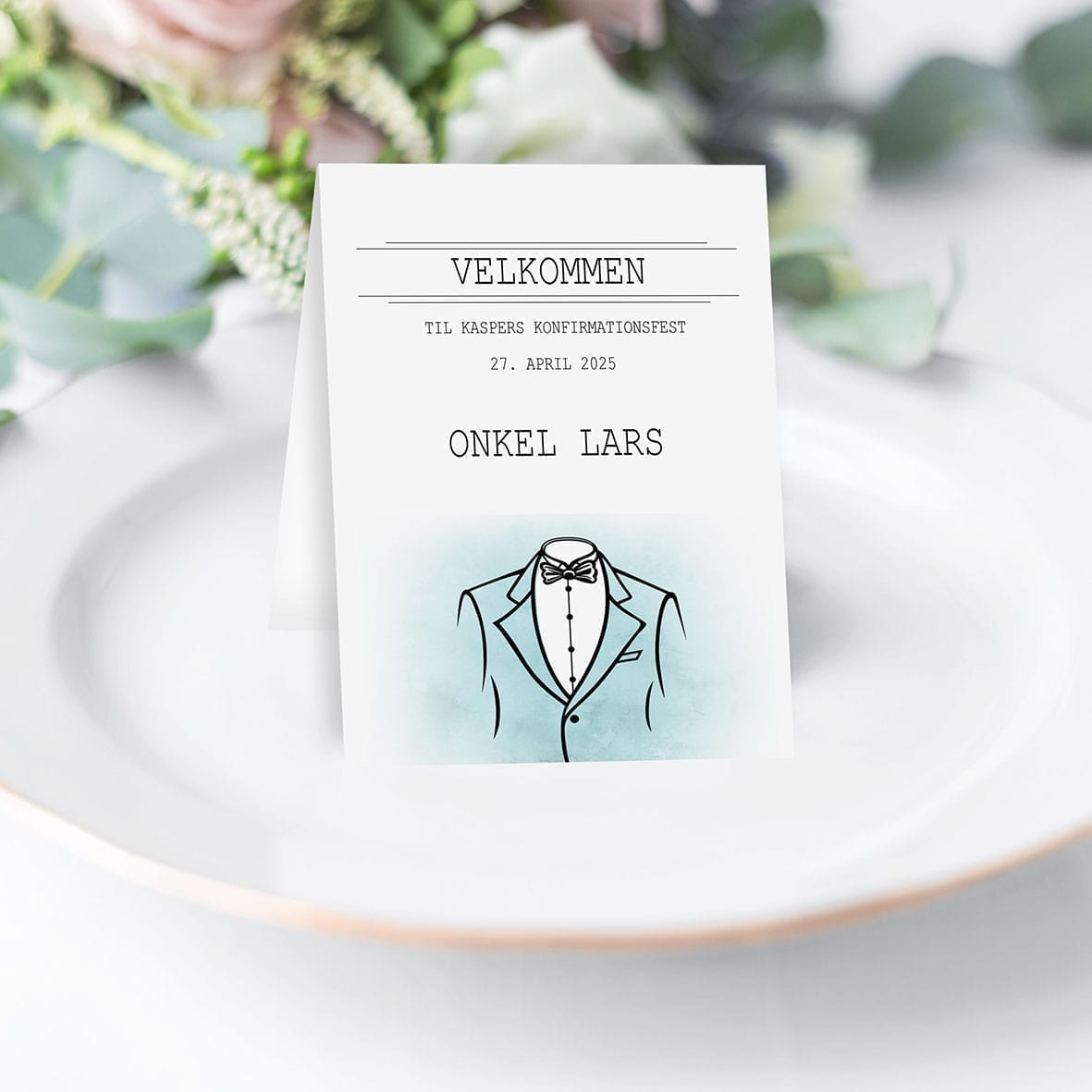 Flot kort i A6 format. Kortet består af 4 sider med valgfri tekst: Forside med festens dato og konfirmandens navn – eventuelt med gæsternes navne trykt på, så det fungerer som bordkort Indersider med velkommen og velbekomme sang Bagsiden som menukort I sparer derfor på tryksager med én flot samlet løsning i jeres ønskede design! Indsæt din ønskede tekst til kortet– så klarer vi resten!